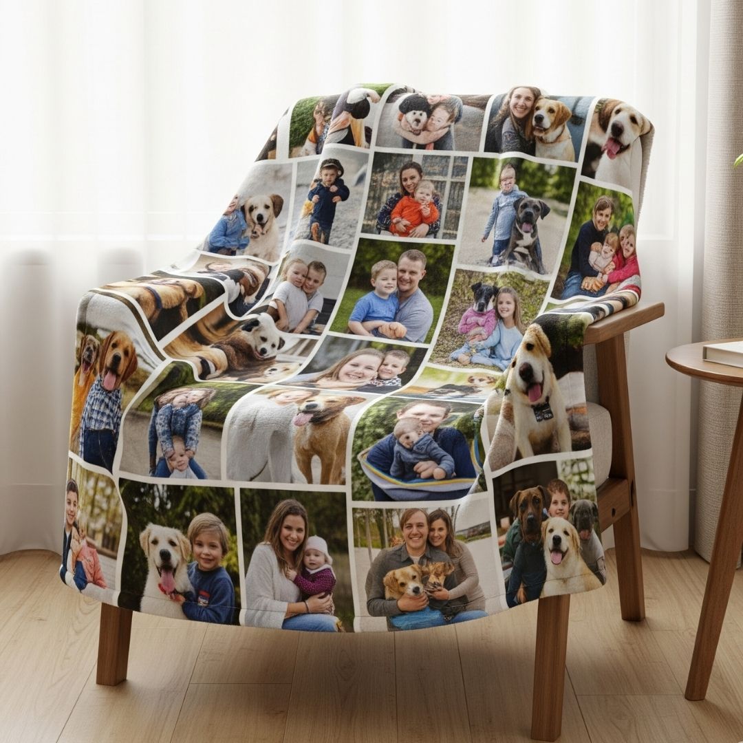 Wrap your memories in warmth and love with our Personalized Photo Blanket. Crafted from high-quality, ultra-soft polar fleece, this custom blanket can feature up to 25 of your favorite photos, along with personalized text and a background color of your choice to complement any style. Available in three versatile sizes and you can have your own size, just send us an email. It’s the ideal gift for birthdays, anniversaries, weddings, or just because. And yes, it’s machine washable, easy to care for, and designed to deliver both comfort and nostalgia.
