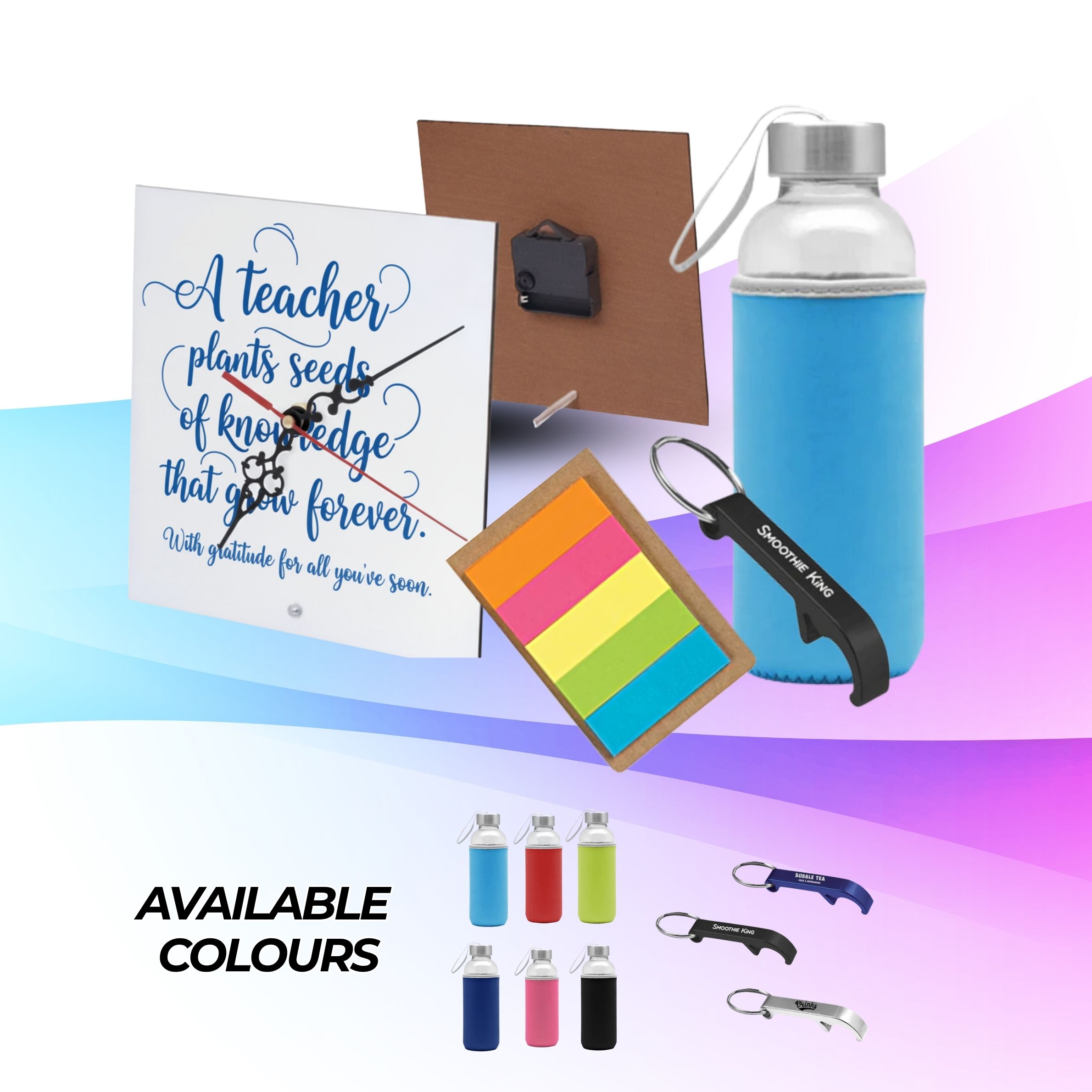 Personalise the clock or bottle with your teacher’s name or a short message.